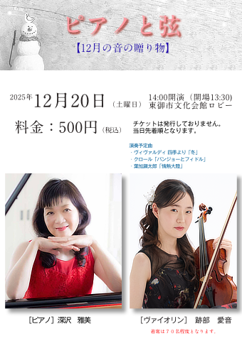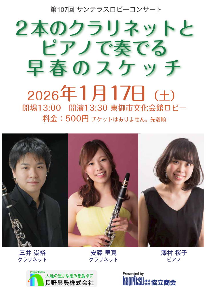 2026年1月17日(土曜日) 開場:13:00 開演:13:30 東御市文化会館ロビー