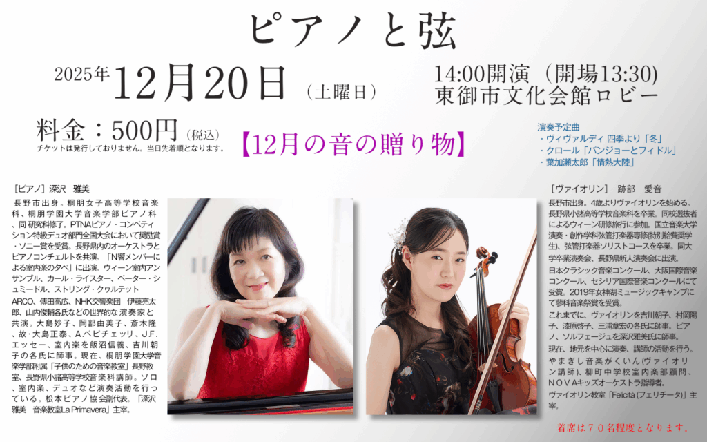 14:00開演(開場13:30)東御市文化会館ロビー